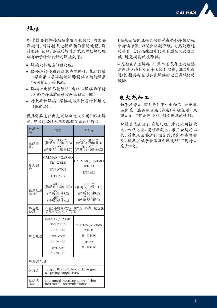 CALMAX 635塑胶模具钢材,铬钼钒冷作合金工具钢,进口CALMAX635模具钢***佳的韧性及耐磨性,淬透及焊接性好可火焰硬化至HRC56-60,淬硬层达5mm厚,适用于抵抗黏着磨损,如添加增强剂塑料模,压实模等.